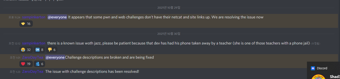 정말 최악이였다... pwn문제는 3~4개 풀었는데 거의 3시간 넘게 서버가 다운되고 거의 대회 초반부터 remote 서버 주소를 주지 않아 계속 기다리다가 그냥 잤다..