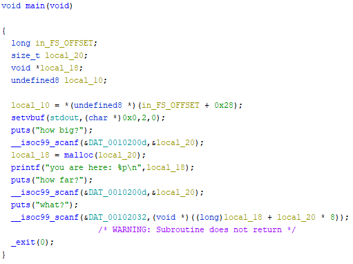함정은 what?에서 입력받을때 size*8의 오프셋으로 받기 때문에 // 8을 써줘야 정확하게 값을 입력할 수 있다.